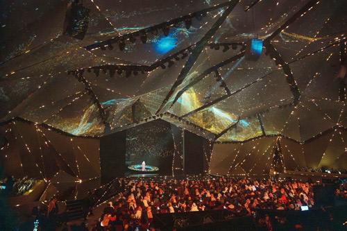 سجادة خزامية واحدة أصبحت علامة مسجّلة للحدث، مئات وحدات الإضاءة الاحترافية، أنظمة صوت وتقنيات إخراج بمعايير عالمية، فقرات موسيقية واستعراضية حية داخل الحفل، ومجسمات ضخمة على السجادة لهوية الجائزة.
