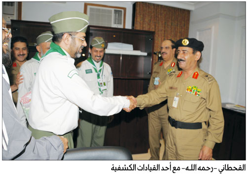 لقد حظيت جمعية الكشافة العربية السعودية خلال تلك المرحلة بدعم واهتمام خاص من القحطاني، الذي كان يثني في كلماته وتصريحاته الميدانية على ما يقدمه الكشَّافون من أعمال تطوعية منظمة، تقوم على الانضباط، وحسن التعامل، وسرعة الاستجابة، وخدمة الإنسان قبل المكان؛ وكانت إشادته بجهودهم في خدمة حجاج بيت الله الحرام والمعتمرين تمثِّل حافزاً كبيراً لهم، ودافعاً لمزيد من العطاء، حيث كانوا يستشعرون قيمة ما يقومون به حين يصدر التقدير من قائد أمني ميداني يدرك حجم الجهد والتحديات.