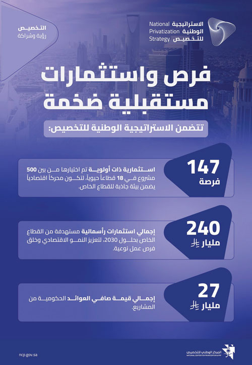 وأوضح أن برنامج التخصيص حقق منذ إطلاقه عددًا من المنجزات، من أبرزها: تأسيس المركز الوطني للتخصيص، الذي استحدث أكثر من 200 مشروع معتمد باستثمارات تُقدّر بقيمة إجمالية تبلغ 800 مليار ريال، وتوقيع ما يقارب 90 عقدًا تنوعت بين عقود نقل ملكية وشراكة بين القطاعين العام والخاص في عدة قطاعات، إلى جانب إسهامه في تعزيز دور القطاع الخاص، ورفع كفاءة تشغيل الأصول الحكومية، وتطوير البيئة التشريعية والتنظيمية الداعمة للاستثمار، بما يدعم التنوع الاقتصادي، ويرفع القدرة التنافسية للمملكة.