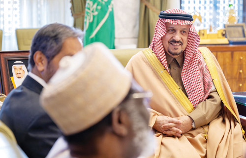 نيابة عن خادم الحرمين الشريفين الملك سلمان بن عبدالعزيز آل سعود، وصاحب السمو الملكي الأمير محمد بن سلمان بن عبدالعزيز آل سعود ولي العهد رئيس مجلس الوزراء -حفظهما الله-، استقبل صاحب السمو الملكي الأمير فيصل بن بندر بن عبدالعزيز أمير منطقة الرياض، في مكتبه بقصر الحكم أمس، عميد السلك الدبلوماسي سفير جمهورية جيبوتي لدى المملكة ضياء الدين بامخرمة، ورؤساء المجموعات الجغرافية المعتمدين لدى المملكة.