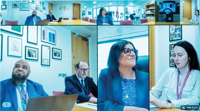 عقد صاحب السمو الملكي الأمير عبدالعزيز بن سعود بن نايف بن عبدالعزيز وزير الداخلية أمس اجتماعًا عبر تقنية الاتصال المرئي مع معالي وزيرة الداخلية في المملكة المتحدة شابانا محمود.