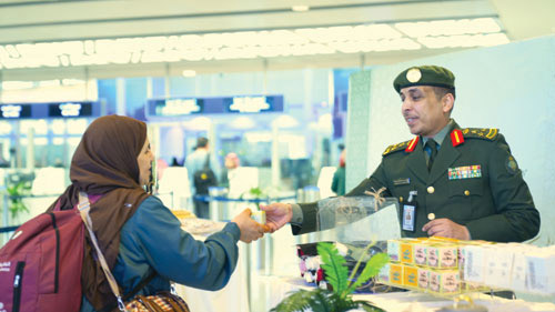 شاركت المديرية العامة للجوازات المسافرين فرحة حلول عيد الفطر، في مختلف المنافذ (الجوية، والبرية، والبحرية)، حرصًا منها على تقديم تجربة سفر مميزة تعزِّز أواصر التواصل المجتمعي وتجسد كرم الضيافة.