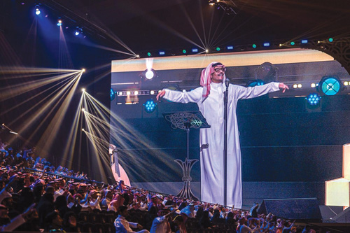 وقدّم رابح صقر خلال الحفل مجموعة من أشهر أعماله التي تفاعل معها الجمهور منذ اللحظات الأولى، حيث صدحت أروقة المسرح بأغنيات أصبحت جزءاً من ذاكرة الأغنية الخليجية، من بينها «أنت ملك» و»يحبونه» و»غرام أطفال» و»لا تمنن»، وسط ترديد واسع من الحضور الذين شاركوا الفنان أداء عدد من المقاطع في أجواء حماسية.