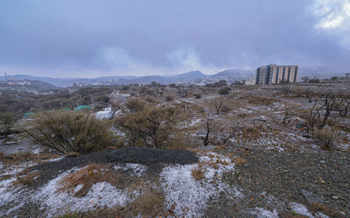 اكتست شوارع ومرتفعات مدينة الباحة أمس بحبات البَرَد، في مشهد نادر أضفى طابعًا شتويًا لافتًا، تزامن مع هطول أمطار غزيرة شملت عددًا من الأحياء والطرق الرئيسة.