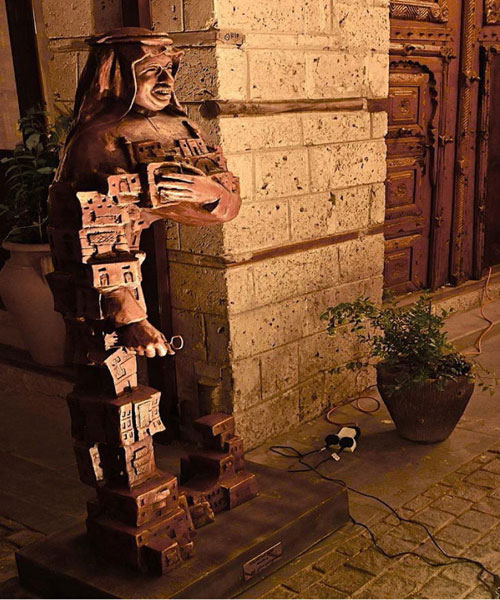 مسك الختام كان تعبيراً فاق الكلام، عكسته رسالة صادقة أمينة جسدها العمل الفني الذي أبدعه الصديق الفنان ربيع الأخرس باسم أصدقاء التراث مقدماً في مجسم (عامل التراث) حاملاً ومحافظاً وحاضناً جدتنا التاريخية وبيده مفتاح خبايا تاريخها العريق.