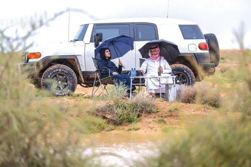ويؤكد عدد من الشباب أن الأمطار تضيف طابعًا خاصًا على الرحلات البرية، حيث تصبح الرمال أكثر تماسكًا؛ مما يسهل القيادة ويزيد من متعة المغامرة، فضلًا عن المشاهد الطبيعية الخلابة التي تتشكل مع تجمع المياه في المنخفضات وانعكاس السماء على برك المطر.