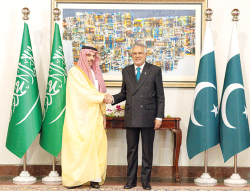 على صعيد ذي صلة التقى سمو وزير الخارجية أمس معالي نائب رئيس الوزراء وزير خارجية جمهورية باكستان الإسلامية محمد إسحاق دار، وذلك على هامش مشاركة سموه في الاجتماع الوزاري الرباعي الذي تستضيفه إسلام أباد.