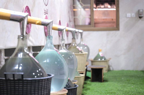 وبيَّن المزارع عالي الشيخ، أن مراحل تقطير ماء الورد وماء العروس تبدأ بنقل الورد من المزارع إلى المعامل التقليدية المعروفة محليًا بـ«بقدور الطبخ» وهي أوعية نحاسية كبيرة توضع فيها كميات محددة من الورد مع الماء، حيث تُحكم عملية الإغلاق باستخدام أغطية محكمة، ثم تُوضع الأوعية على مصادر حرارة معتدلة، لتبدأ عملية الغليان التي تُطلق الأبخرة المشبعة بالزيوت العطرية، موضحًا أن الأبخرة تنتقل بعد ذلك عبر أنابيب ومن ثم إلى أوعية تبريد تُعرف بـ«الملتقى»، حيث تتكاثف لتتحول إلى سائل عطري يُجمع بعناية، وينتج عنه عملية ماء الورد، إلى جانب زيت الورد النقي الذي يُعد من أغلى الزيوت العطرية في العالم.