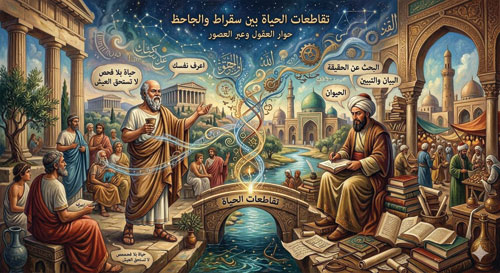 وفي هذا المقال سنتحدّث عنْ تقاطعات السيرة بين عملاقين منْ عمالقة الفكر الإنساني، الفيلسوف الإغريقي سقراط الذي عاش في العصور القديمة قبل الميلاد، والأديب العربي عمرو بن بحر الجاحظ الذي عاش في العصر العباسي، ونبدأ حديثنا بمفارقة الشكل والجوهر، وأعني قباحة المنظر ودمامة الهيئة الخارجية للشخصيّة مقابل جمال الروح وبهاء الفكر والعلم في الهيئة الداخليّة لها، وربّما تكون هذه المفارقة عند الشخصيّتين قد خلقت في أعماقهما فنّ الشخصيّة الساخرة، كما سنرى في هذا المقال، فلطالما تنمّر حسادُ سقراط وأعداؤه بأنّ وجهه قبيح وأنفه كبير، ولكنّ سقراط لمْ يعبأ بهمْ أبداً، فقدْ كانَ يقبعُ بداخله أعظم مفكر عرفته البشريّة في ذلك العهد القديم، لقدْ طوّقت شهرته أثينا في القرن الخامس قبلَ الميلاد، فيُحكى في الأدبيّات الإغريقيّة أنّ خصوم سقراط كانوا يسخرون منْ قباحة منظره ويهزؤون من بشاعة هيئته، وذات مرةٍ أوعزوا إلى أحد الكتّاب المسرحيين أنْ يكتب مسرحيّة يكون بطلها سقراط! بهيئته وشخصه، وأحضروا ممثلاً بارعاً لتجسيد شخصيّته، فلمّا أُعلن عنْ عرضها على المسرح، تفاجأوا أنّ سقراط كان أوّل الحاضرين، والعجيب أنّه كان أكثرُ الضاحكين منْ شخصيّة الممثل الذي كان يشبهه تماماً، والذي أتقن دوره بإبداع شديد، وقد زادت دهشة هؤلاء الحاقدين حينما تقدّم بنفسه لتهنئة المؤلف والمخرج والممثل! بلْ وشكرهم بنفسه! وقد ارتسمت علامة الرضا على وجهه، وعند انصرافه من المسرح قال للحضور عبارته الشهيرة: لقد زدّتموني معرفة بنفسي، فلنْ يكون الإنسانُ إنساناً إنْ لمْ يعرفْ نفسه على حقيقتها!