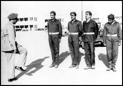 الثاني من اليمين سمو الأمير فهد بن عبدالعزيز مجنداً متطوعاً أثناء العدوان الثلاثي على مصر سنة 1956م وإلى جواره أصحاب السمو الملكي الأمير تركي بن عبدالعزيز والأمير سلمان بن عبدالعزيز