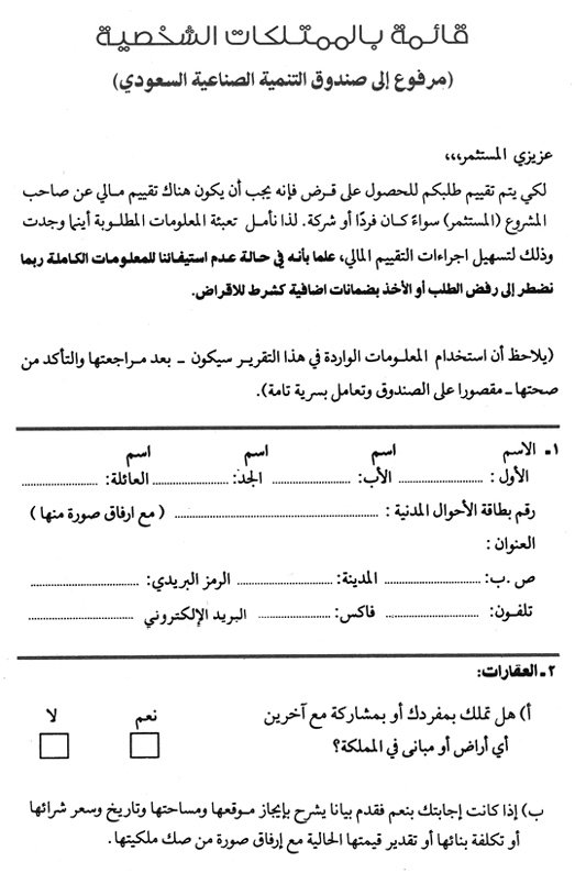 قروض و أموال - قروض بنكية - صندوق التنمية الصناعية السعودي - نماذج طلب القروض