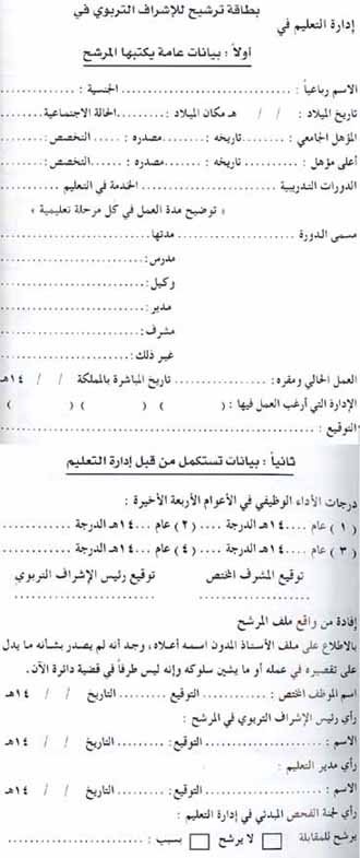 ثقافة وإعلام - تعليم - شؤون المعلمين - الأشراف التربوي - بطاقة ترشيح للإشراف التربوي